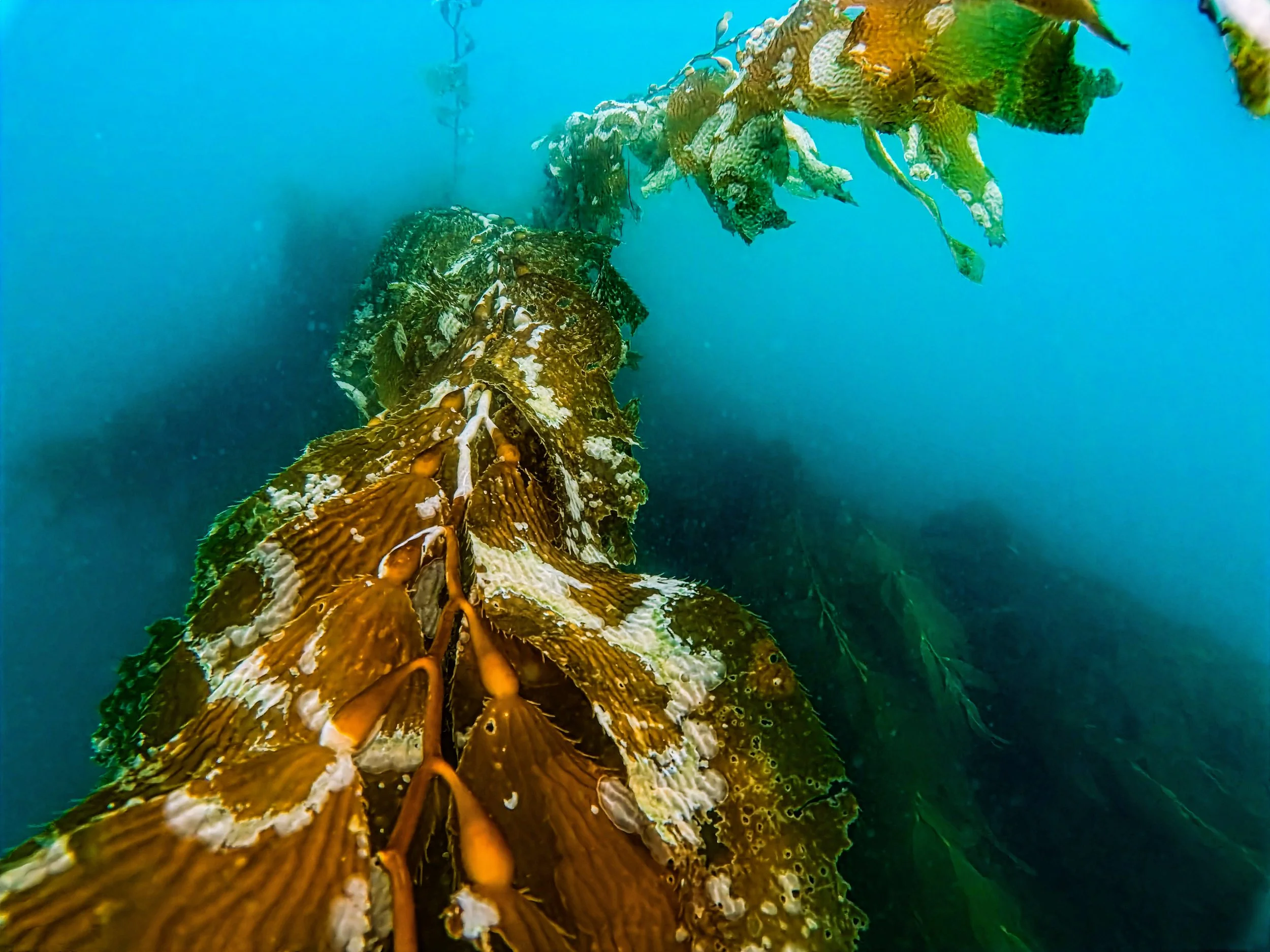 I turn around and head back up to the north end of the beach. I swim over large kelp beds. I have these fantasies of the kelp clearing and exposing large schools of fish or some huge shark beneath. None of these fantasies come to pass. Still I love this kelp. I love how it looks both from above and below the water. It’s like a walk through the garden out here.