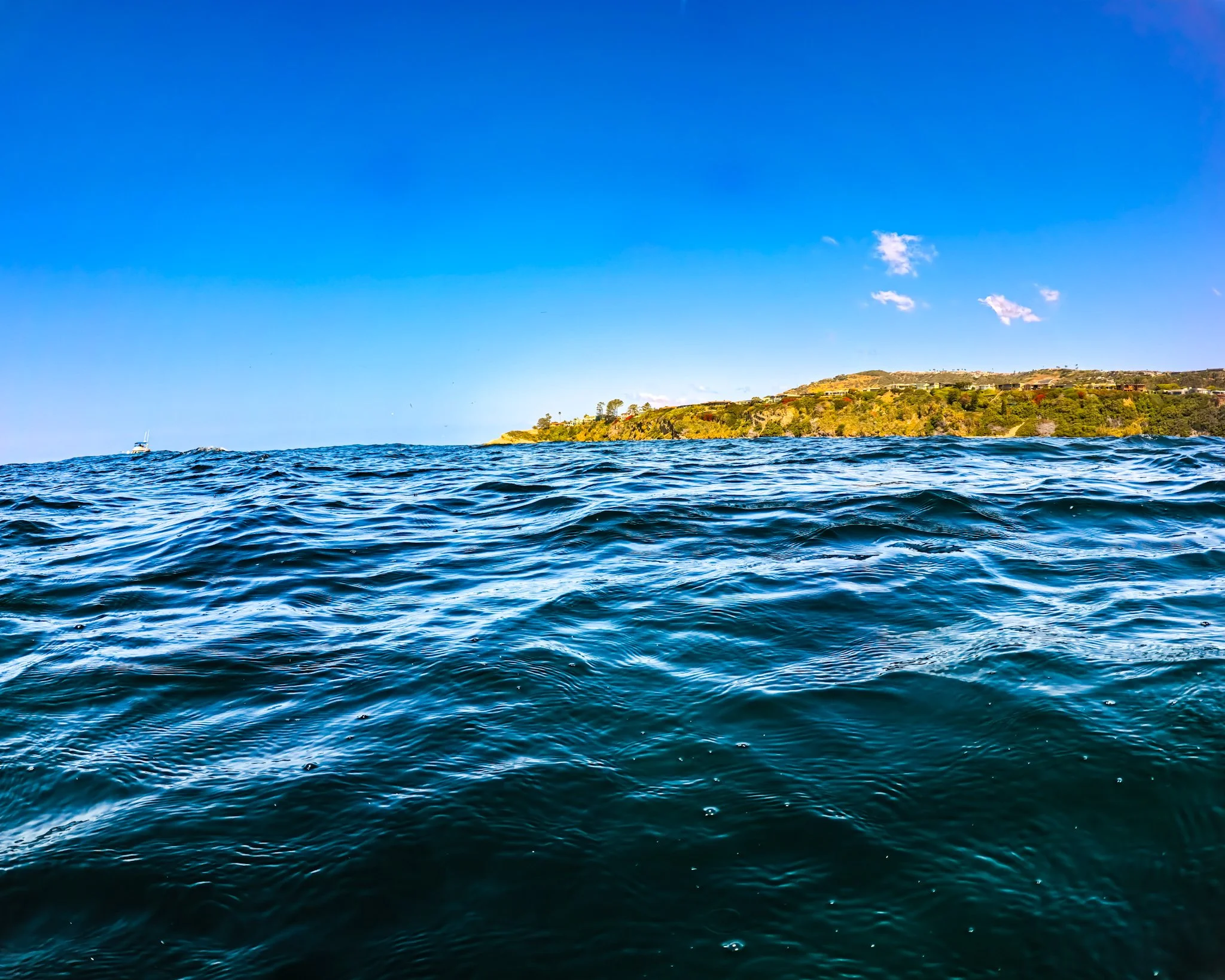 I get in the water and make it past these inshore waves. I start to swim and head north today. There is a lot of movement in the water. The current is definitely moving north. There is no optical illusion here. Below the surface, I can see sand and effervescence moving like wild clouds lending a white and light brown color to their swirling storms that rage around the rocks that rest on the ocean floor.