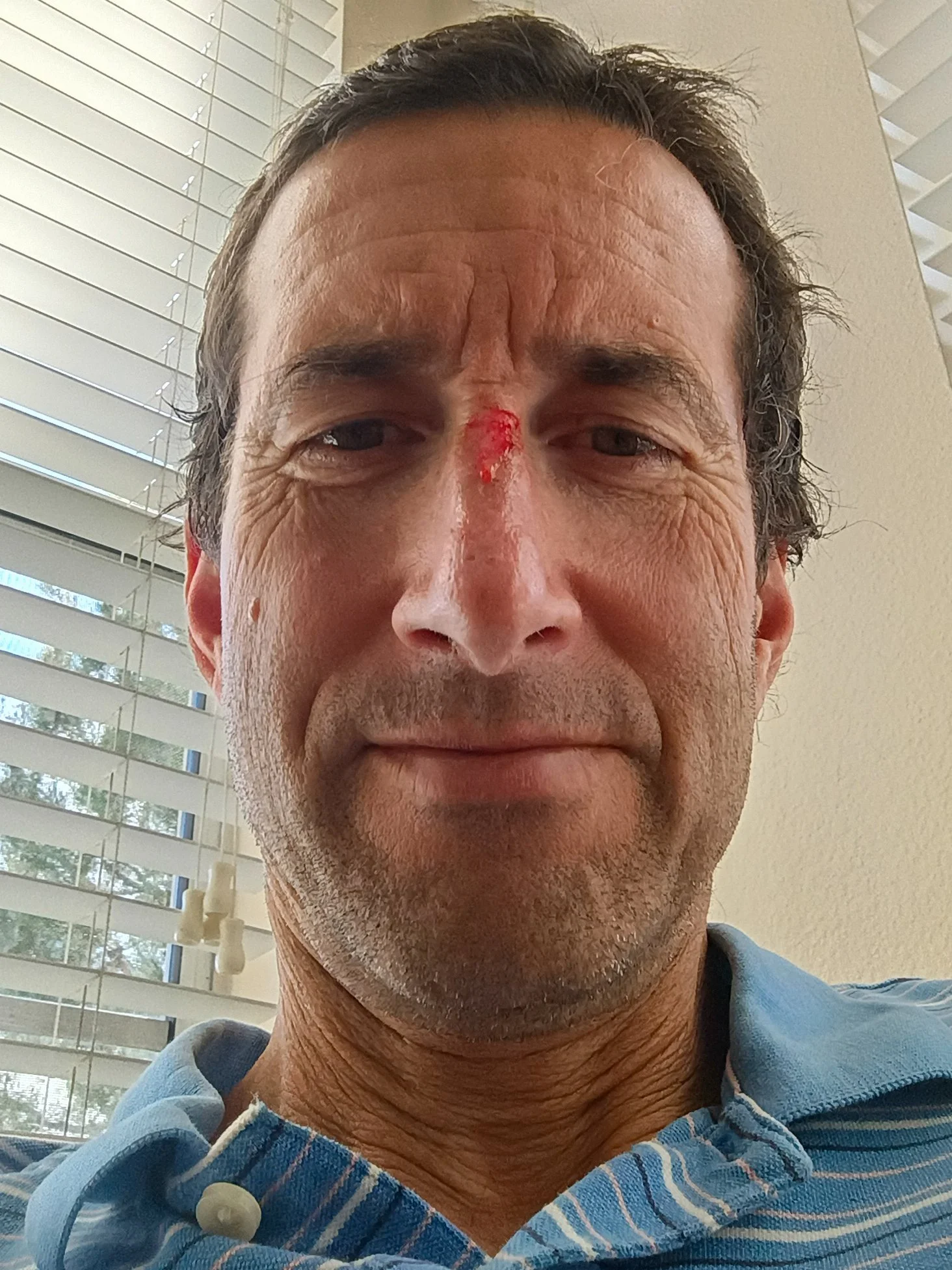 As I walk back up the stairs, I wipe my nose and see a hint of blood on my fingers. I think my nose is bleeding from the inside but when I get to my car I realize I scraped off the skin where my goggles connect the two lenses at the bridge of my nose. Nice. I just hope it looks cool and not pathetic after the scab forms.