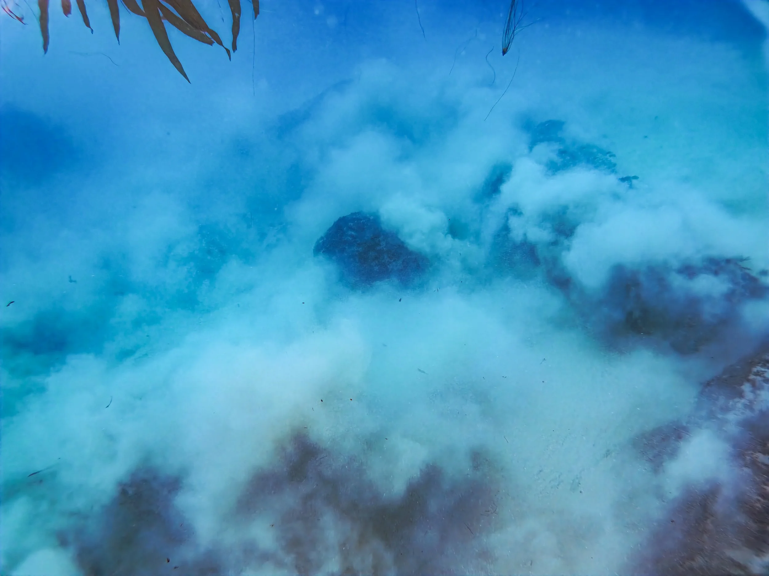 About half way up the beach I come to a patch of kelp forest that is absolutely beautiful. Even without the extra light, there is alot to see here. I see these fish that are blending in with the kelp leaves. They don’t look familiar at all. There are lots of them and this is all so super cool to look at. It’s beautiful. I dive several times down towards the floor and then watch the vines of kelp against the light coming through the surface of the water and I thoroughly enjoy this.