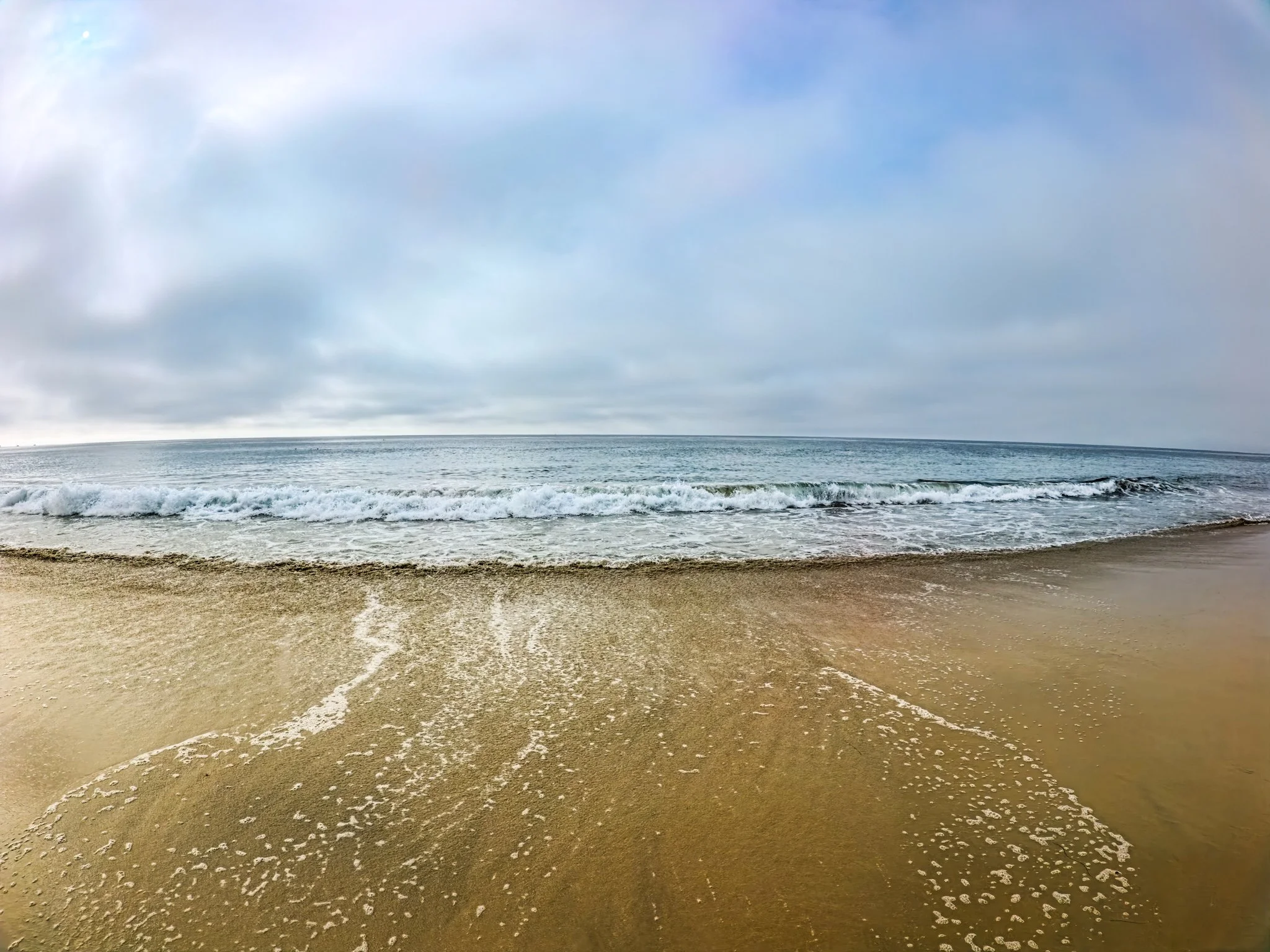 Once I am in the parking lot, I’m wondering where that golden sand is now. I can’t see the beach quite yet but by the looks of things here, gold is not a color I will be seeing. I’m not turning around. I’m doing this. I get out of the car and the absence of direct sunlight on my skin is palpable. That said, I’m relatively comfortable. It’s by no means arctic conditions here. Let’s just see what unfolds out there.