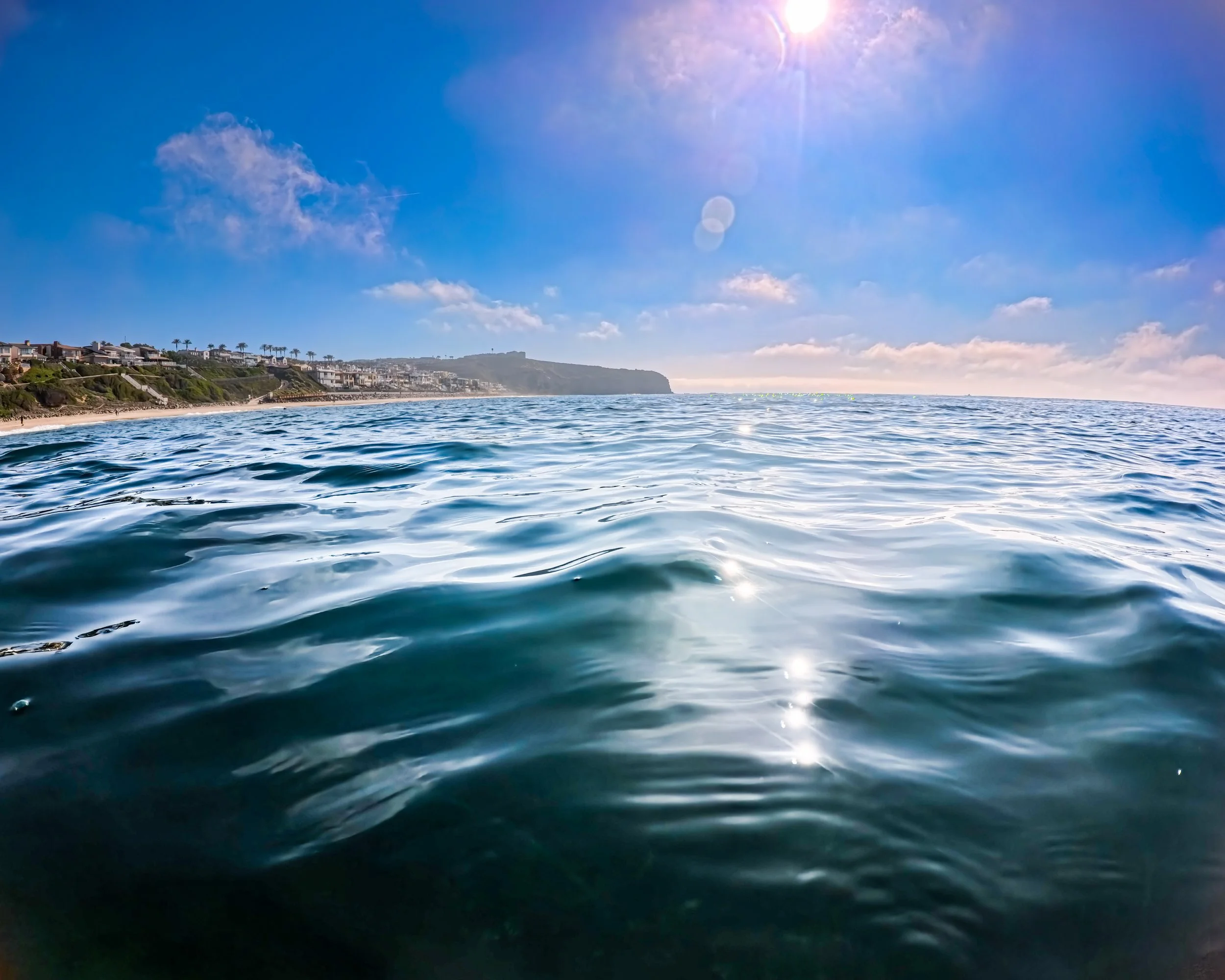 I do make it all the way to the beach club. While the fog is definitely alive here, it chooses to live at a safe distance from where I am. Looking south towards the Dana Point headlands, it is looking quite dark and obscured. Even the lifeguard tower below the Ritz appears barely visible. Regardless, I have a plain view of the shore from where I am and I’ll just keep swimming while I do. So I turn around and head back to where I started.