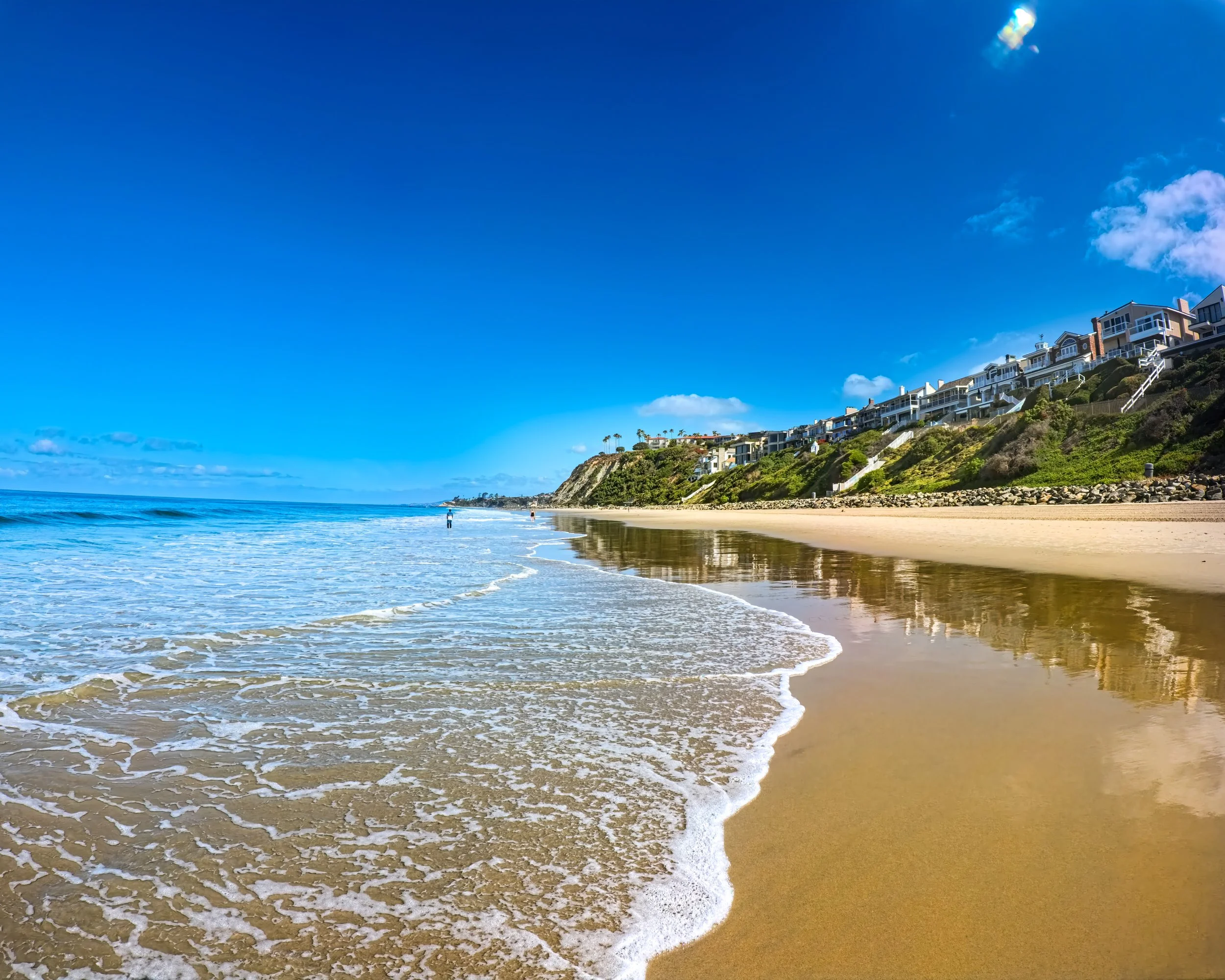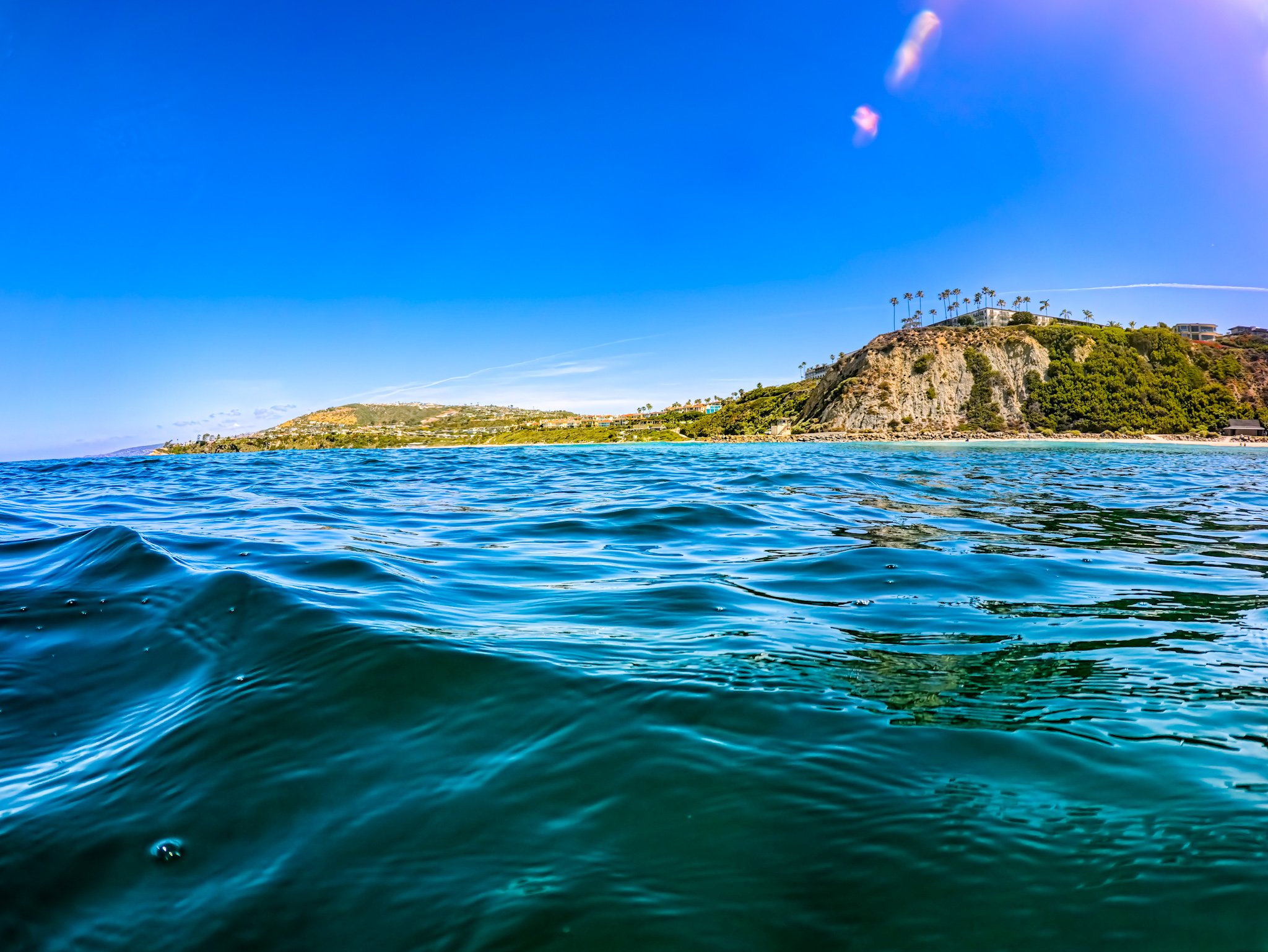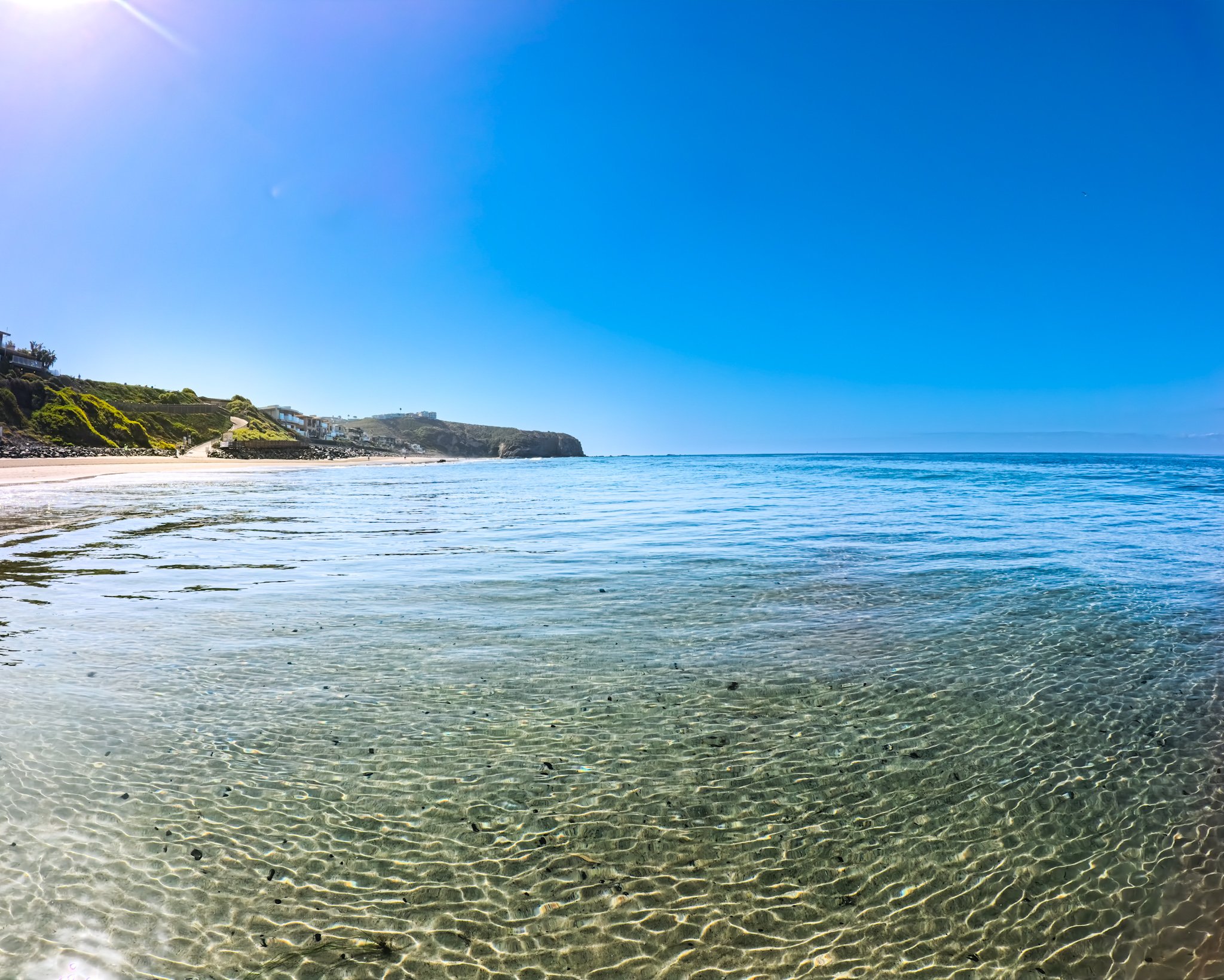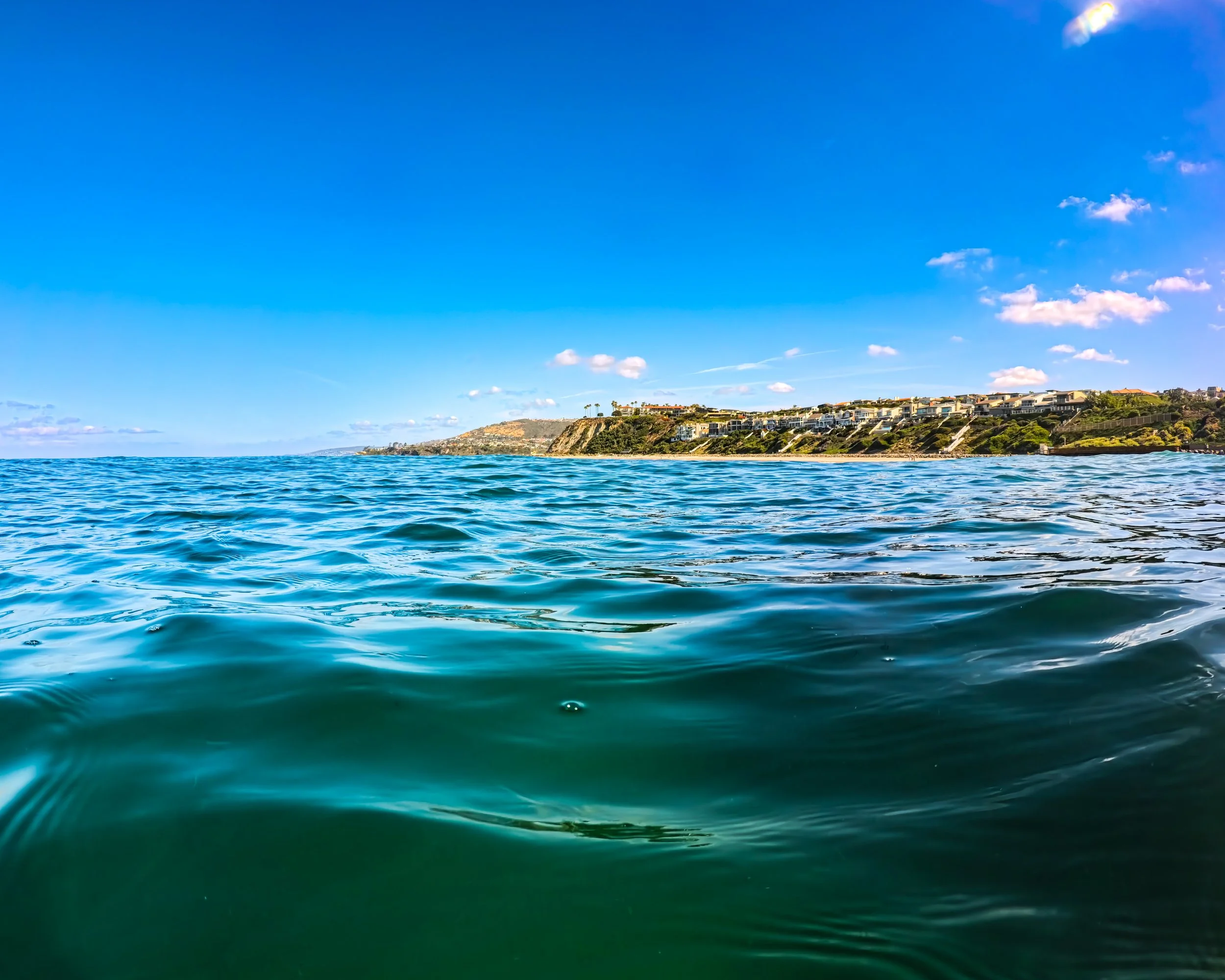 I drive to the beach and I look out onto the water from the top of Selva Road and I see, water, water, and more water. There are clouds out on the horizon hiding Catalina but it is all blue sky here.