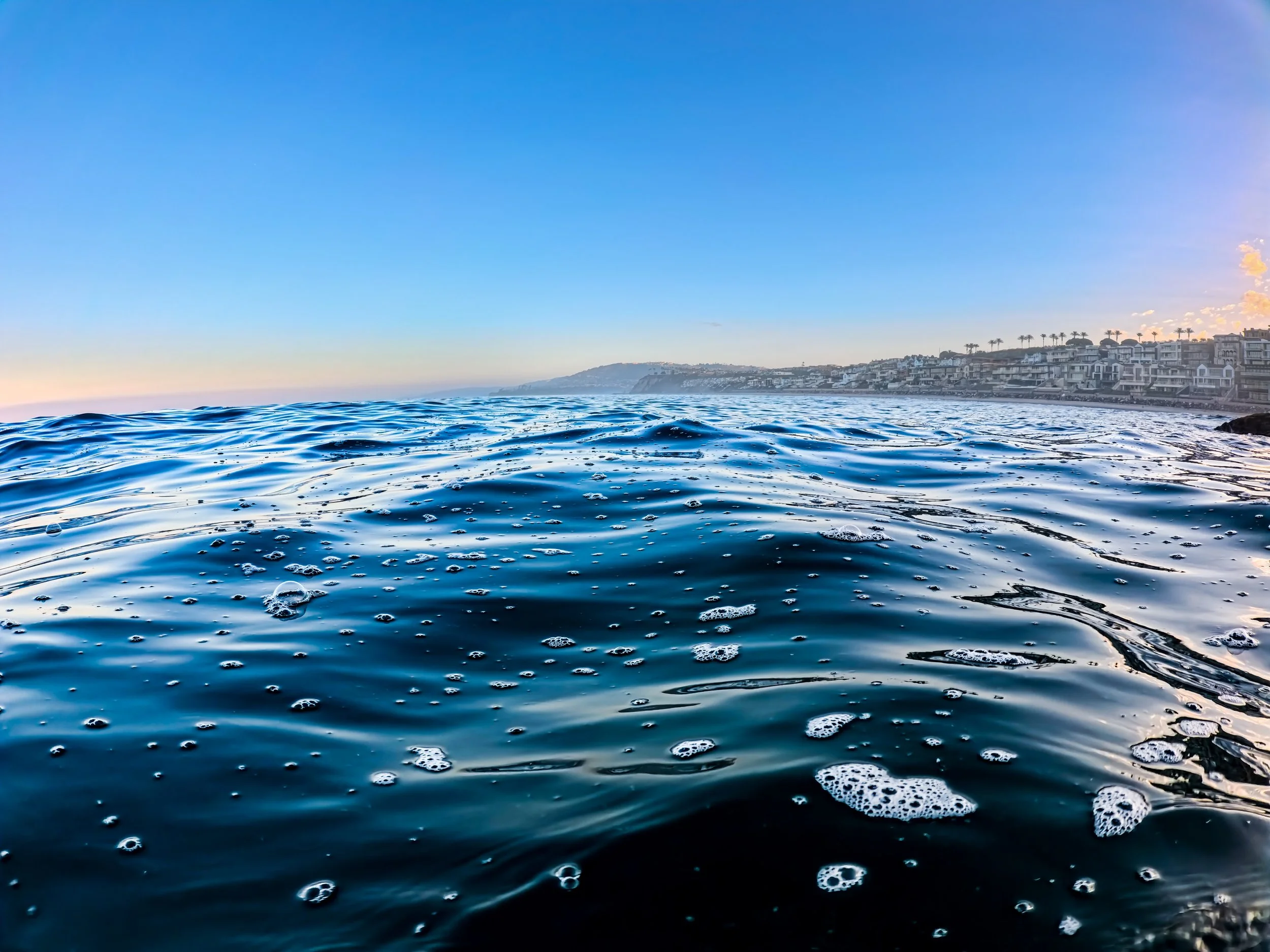 Just as I get to the south end of the beach the sun crests the Dana Point headlands. That looming fire explodes. I turn around and head north and now I am staring at that narcotic pink horizon. I could just melt right into it. About 10 minutes up the beach I come across a kelp tree. Its leaves catch the light just right and it’s all electric. I decide to dive down close to the ocean floor so I can get a view of the kelp from below looking up toward the sun but protected by the water. I do this and it does not disappoint. Salt water enters my nose and I actually like this. It arouses a sense memory that brings back some of my best memories of childhood - riding waves and being tossed in the water.