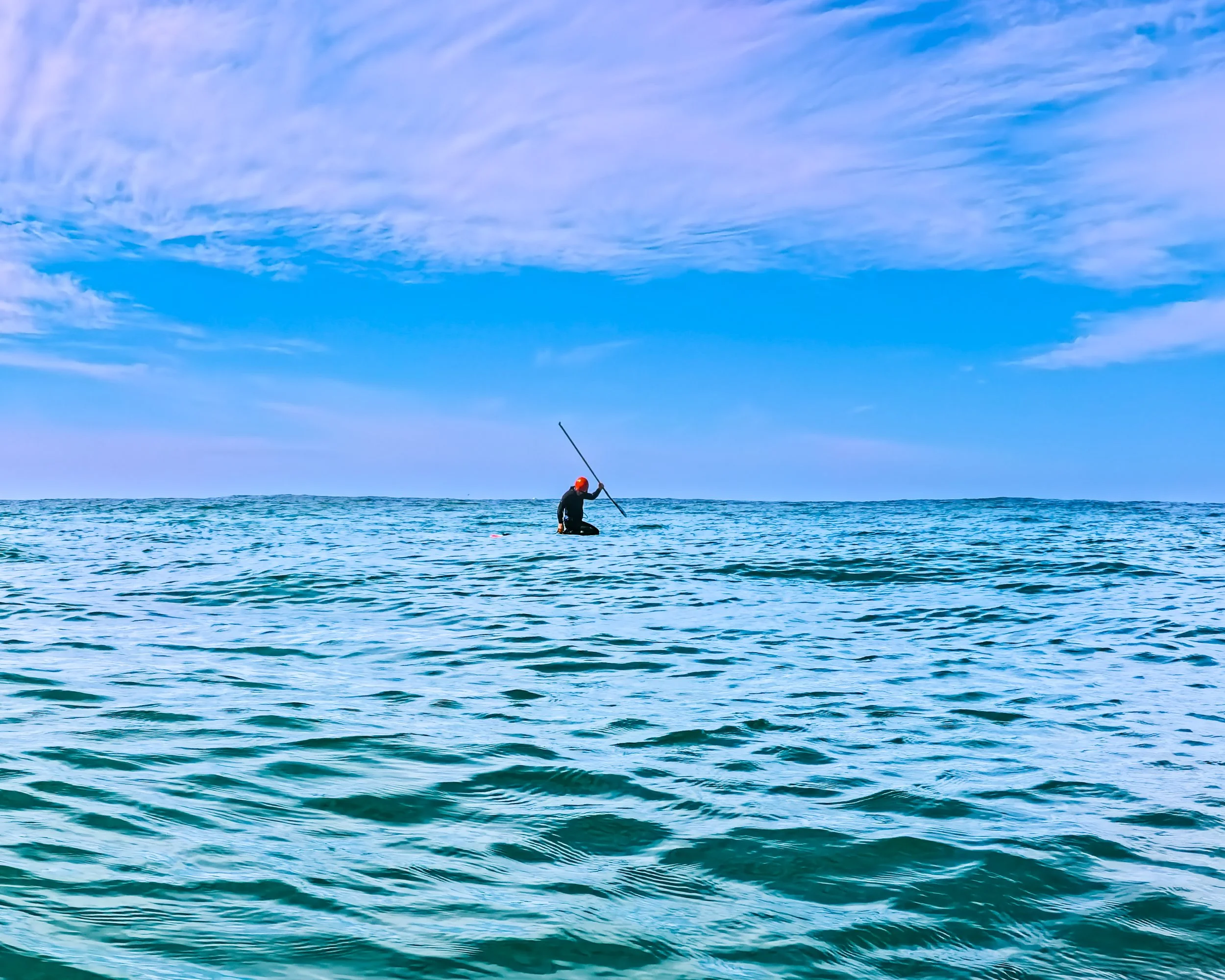I turn around and head back north. I remember my fuzzy, dream-like state on Monday. I just could not clear my mind and live in the here and now. It is so easy to be lulled into a semi-dream state out here. You are just floating on the water and sometimes you can only see shapes and shadows below. There is no center and it is easy to get lost in your head. Today, I decide that maybe that is just fine as it is. Why force a clear mind? I don’t even think that is possible and seems to run contrary to the spirit of here and now. The fact is that, here and now, I have images and dreams running through my thoughts and maybe I should be paying attention to those. So I just try to exist amongst these strange and disjointed images. None of it makes any sense and they lack any kind of a clear narrative. It’s ok. I feel like they are meant to be seen but not necessarily understood.