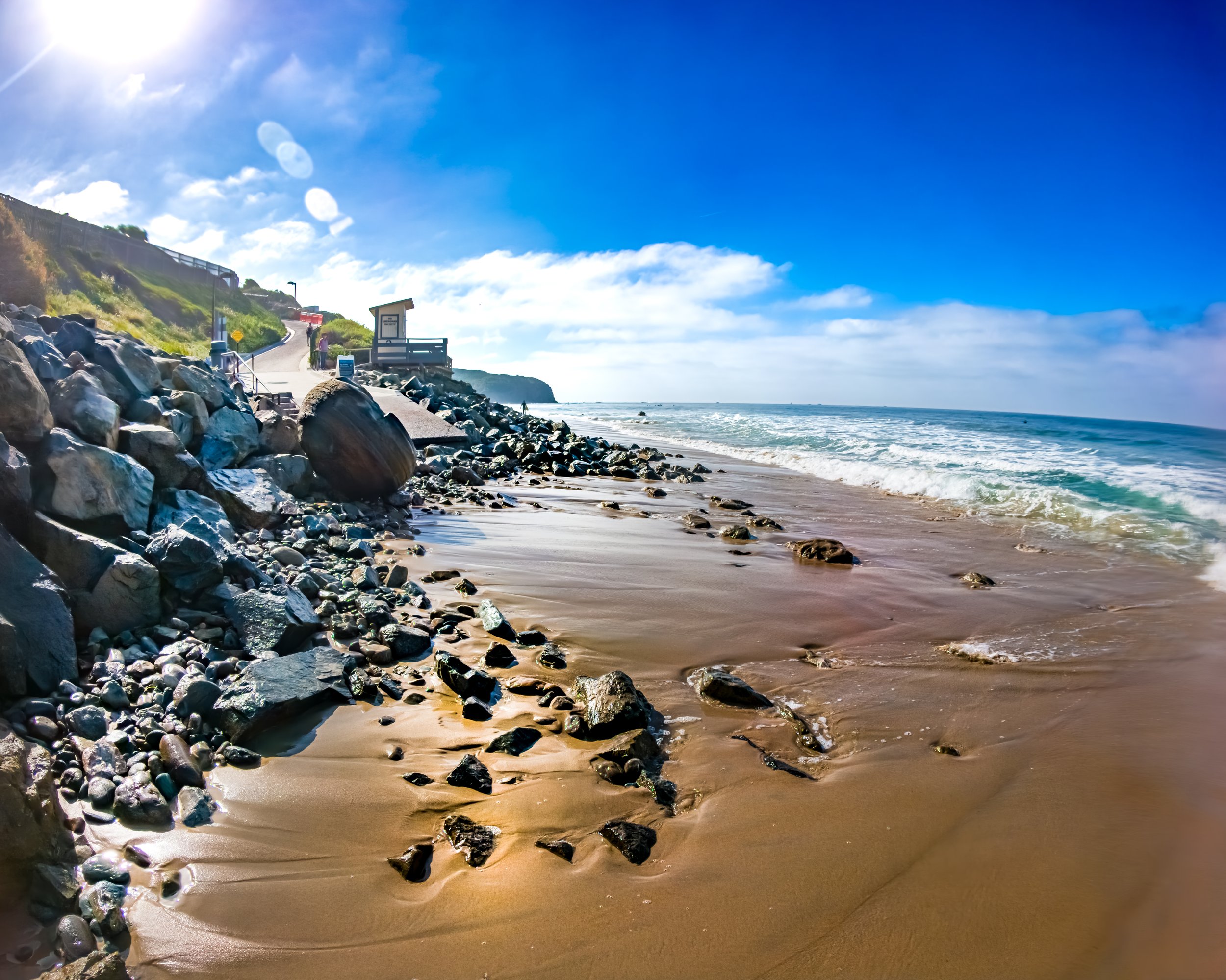 That all said, serious beach injuries here are fairly rare. The latest big rescue here was about a week ago when someone decided to climb up the cliff and could not get themselves back down. Ok. I’m not fond of heights and can’t ever imagine myself doing that. That kind of just falls into the category of “not smart.” Sadly there have been times when someone who would be considered a true “waterman” has been fatally injured. A young man, about 2 or 3 years ago fell off his surfboard and hit his head on a rock and died. Something like that could happen to anyone. This particular person was a well known local surfer and body boarder who knew what he was doing.