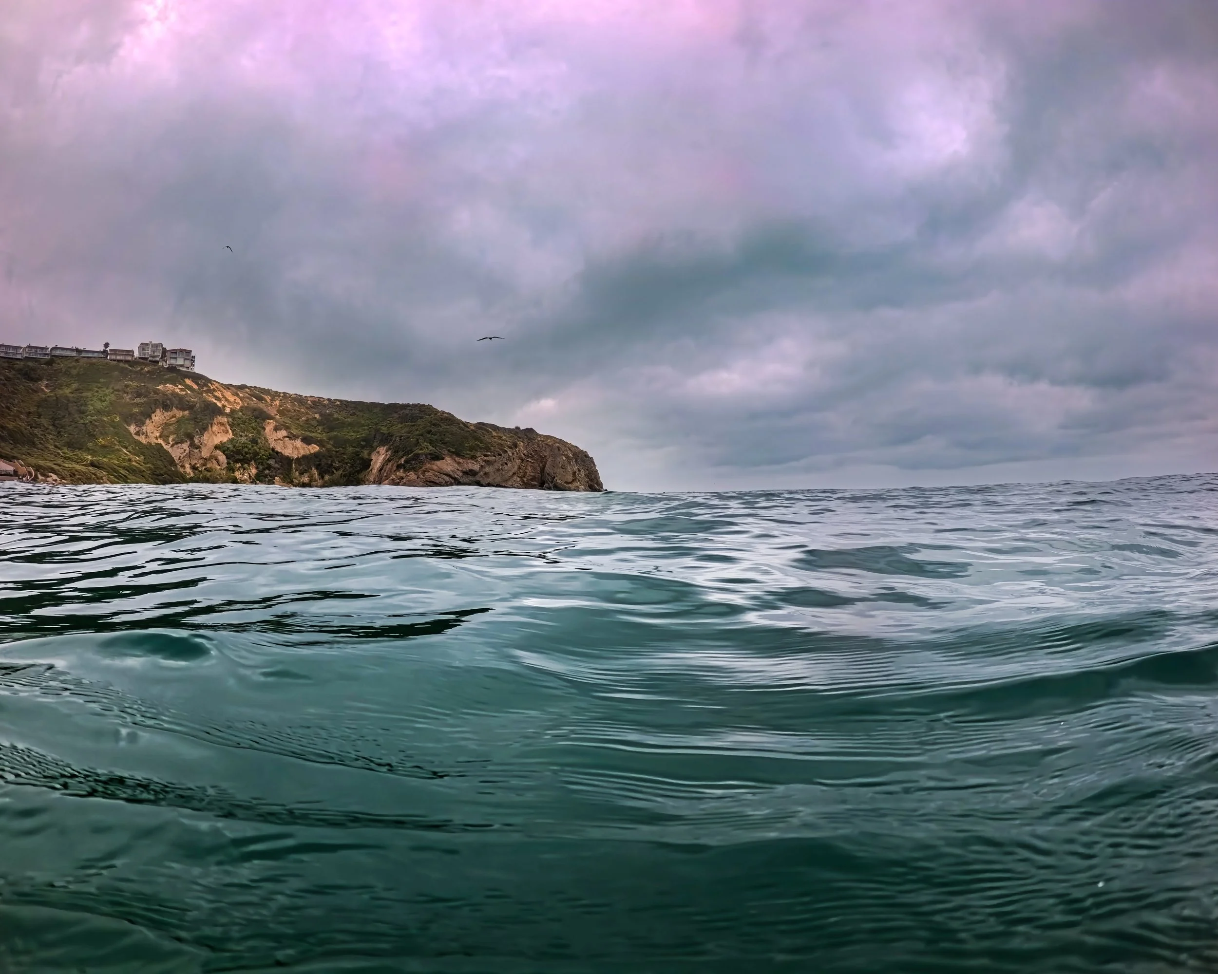 It doesn’t take long to walk past the surf and I soon start to swim south. Oof. I swim through this transition period of going from dry and warm to wet and cold. I know the cold will pass. The wet will remain through the entirety of the swim. That’s ok. I come here to get wet. I like wet.
