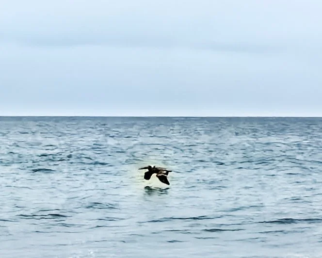I get to the beach and I see a couple pelicans flying close inshore over the water. This happens so often when I get to the shore. I love seeing them. I walk into the water. There really are no waves to write home about. Then again who am I going to write to? My dog? The water is cool and I can’t believe I am actually doing this and also it’s really not that bad.