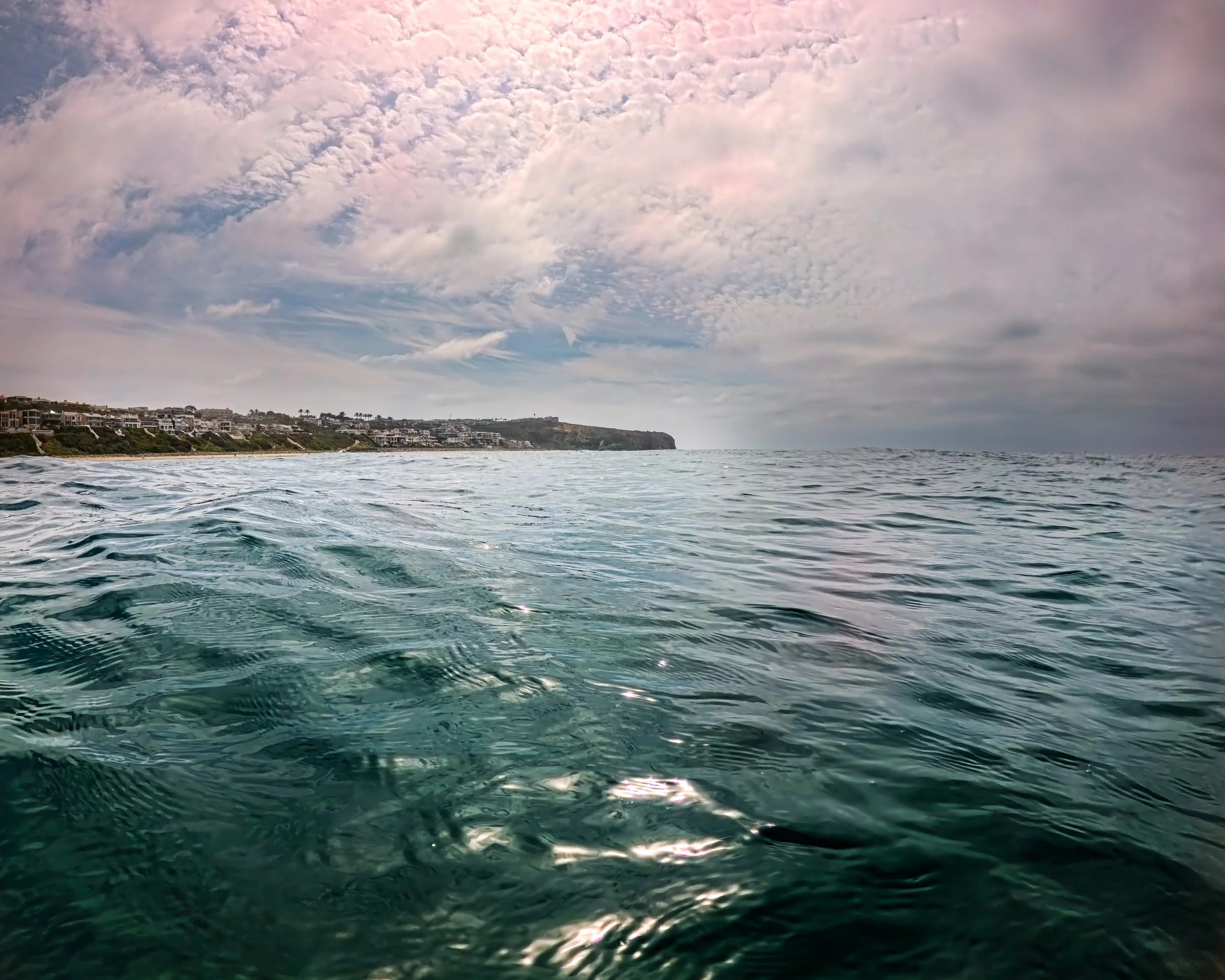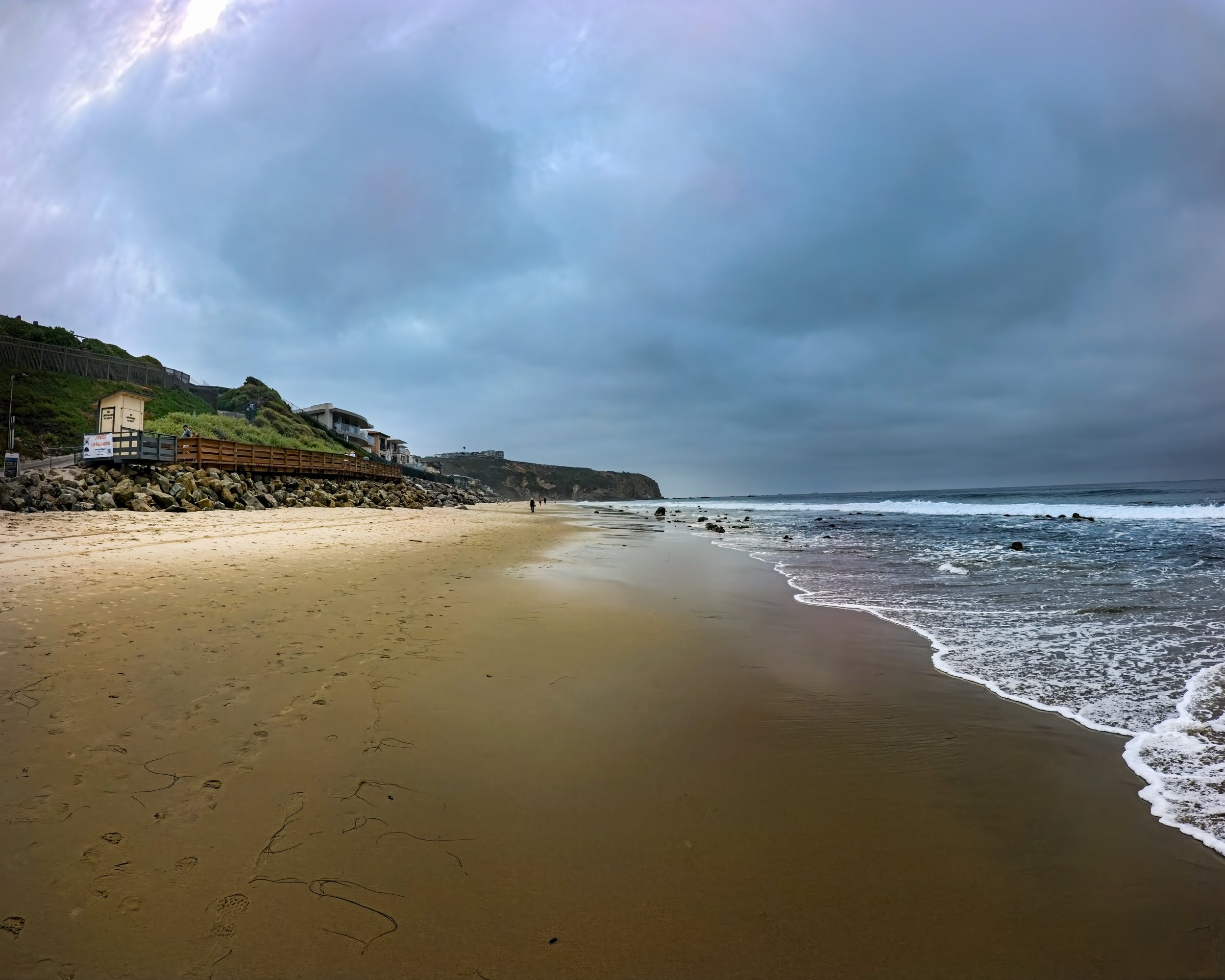 Well today looks pretty close to yesterday. The difference is that the sky is a little darker and the beach is a little more dreary. There is some blue sky poking around my apartment, but there is no sign of any of it by the time I reach the beach just a couple miles west. The upside is that the Capistrano Beach nearshore buoy is reporting 67 degrees when I wake up at 4:00. As is typical, it drops a degree by the time I leave for the beach at 9:45 but I’m not going to complain about 66.