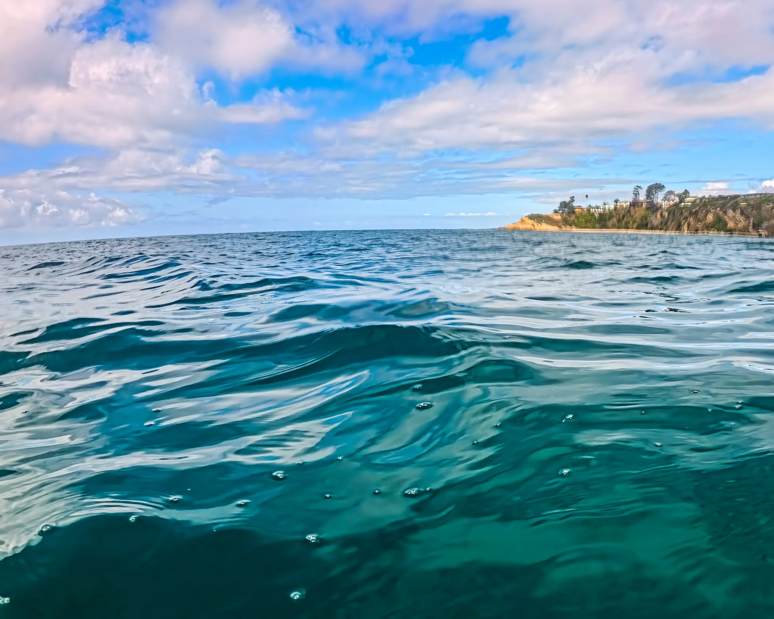 I have this theory that a relaxed mind is a free mind and a more creative mind that is better able to identify opportunities and recognize joy and be willing to pursue it. As I swim south, I feel like I am pursuing the opposite end of every wake that comes my way and there are countless numbers of those. It’s just enough current to add challenge and intensity and not feel like a slog or like I am swimming in place. I just love looking at how the light is shining on the water here. This entire vast, wet plane from here to Dana Point is on fire with light.