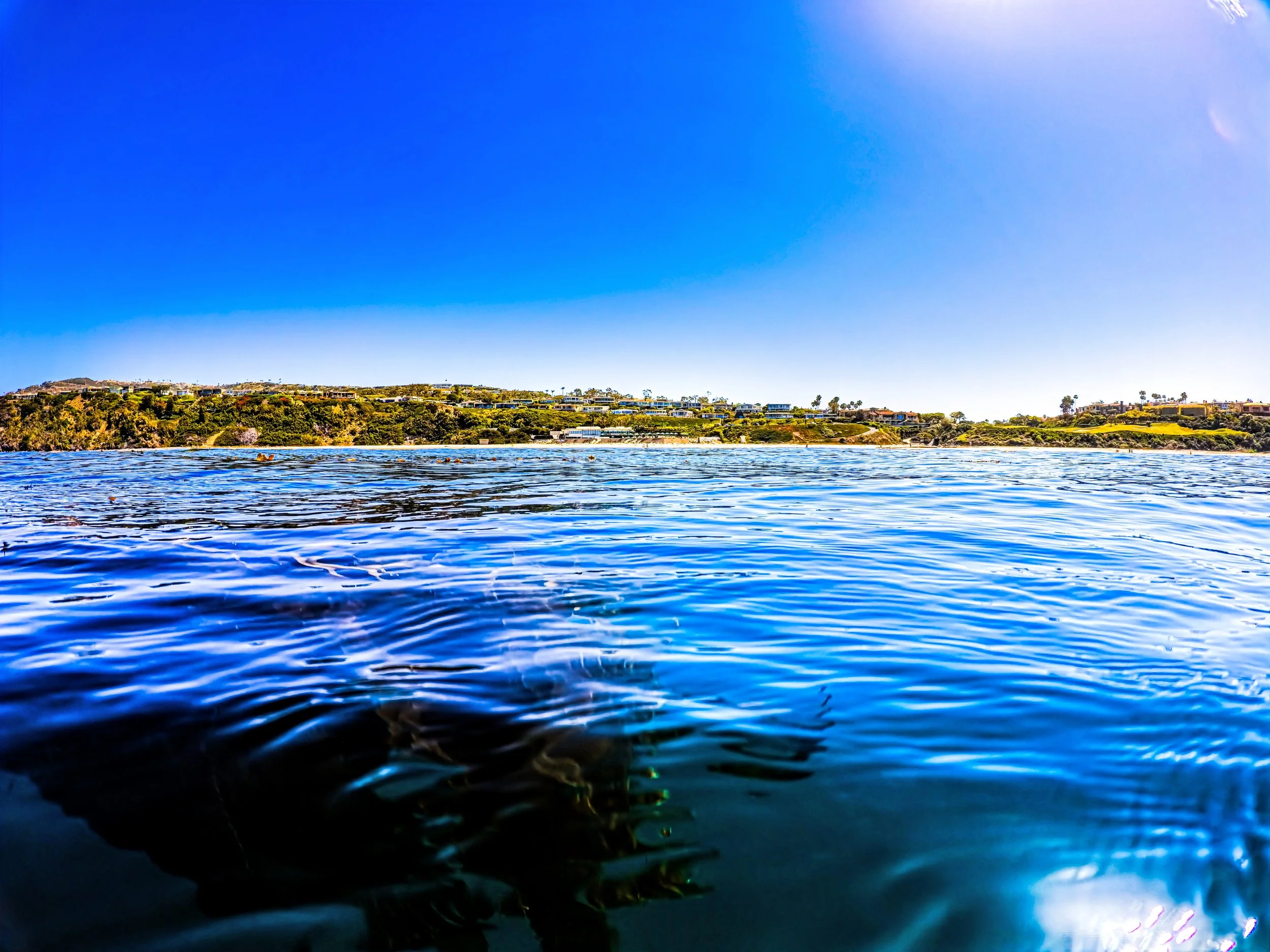 I just relax and breath into this water and light and horizon and the glimpses of land and waves that I spy out the corner of my eye. The combination of breathe and water sets my feelings free. They wander down a meandering path of memory, delight, joy and anticipation. I feel like I am meant to be here and doing what I am doing. My intention is to trust and let go of my need to control and force an outcome and just see where that takes me. That is, after all, how I got here in the first place. Six years ago I could have never imagined living here in Dana Point and being compelled to swim in the ocean. It was nowhere near to what I could envision for myself. Yet here I am.