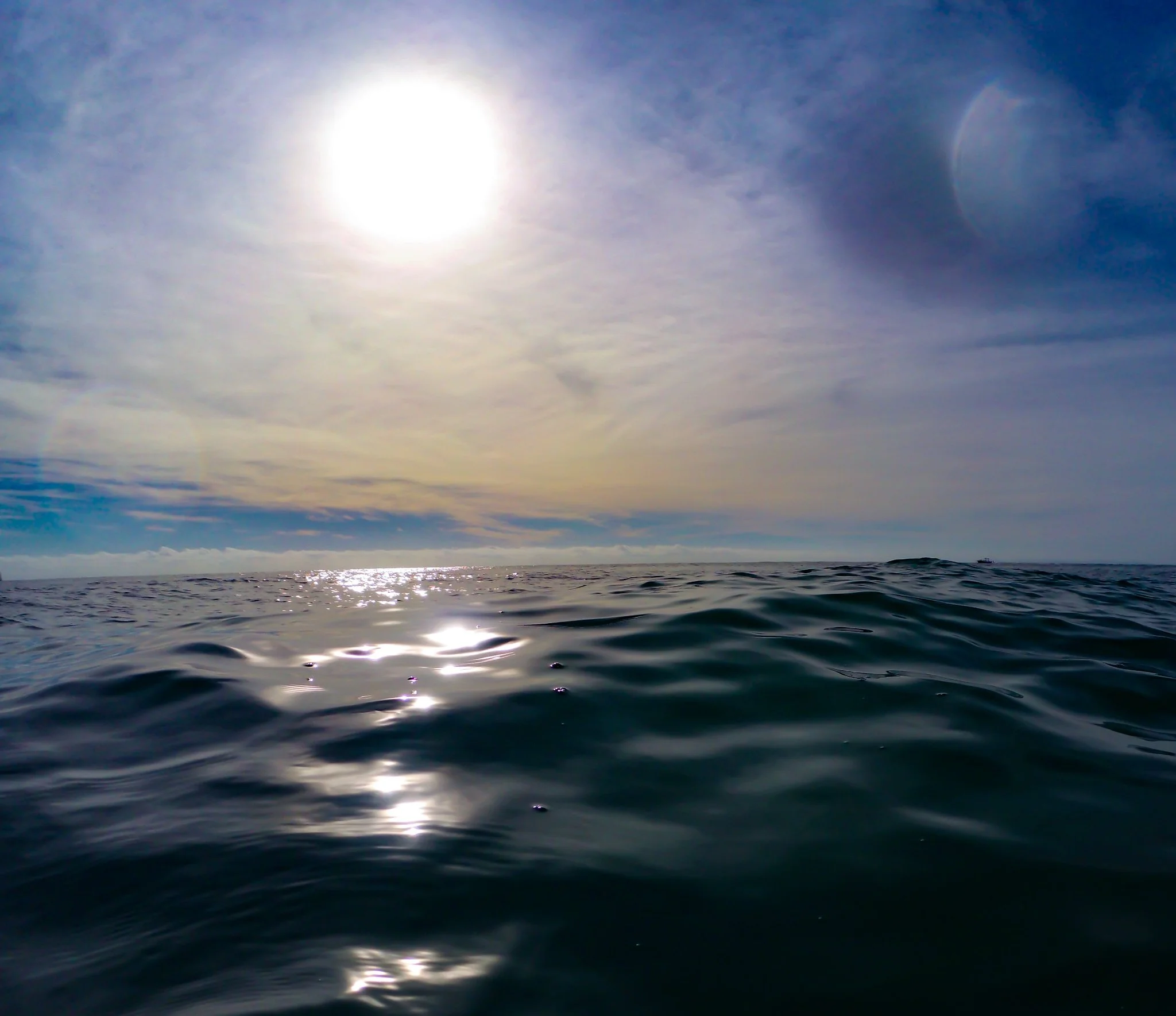 On the final leg south to my finish spot I intentionally cut inland. Eventually I see the back sides of the breaking waves just east of me. Are they east? The angles feel distorted and I end up needing to head back out west again because it feels like I’m getting too close. Then I have to turn around to head north again because somehow I over shot and with the tide as low as it is and the waves I don’t want to collide with the rockier patches that are just south of my usual point of land fall.