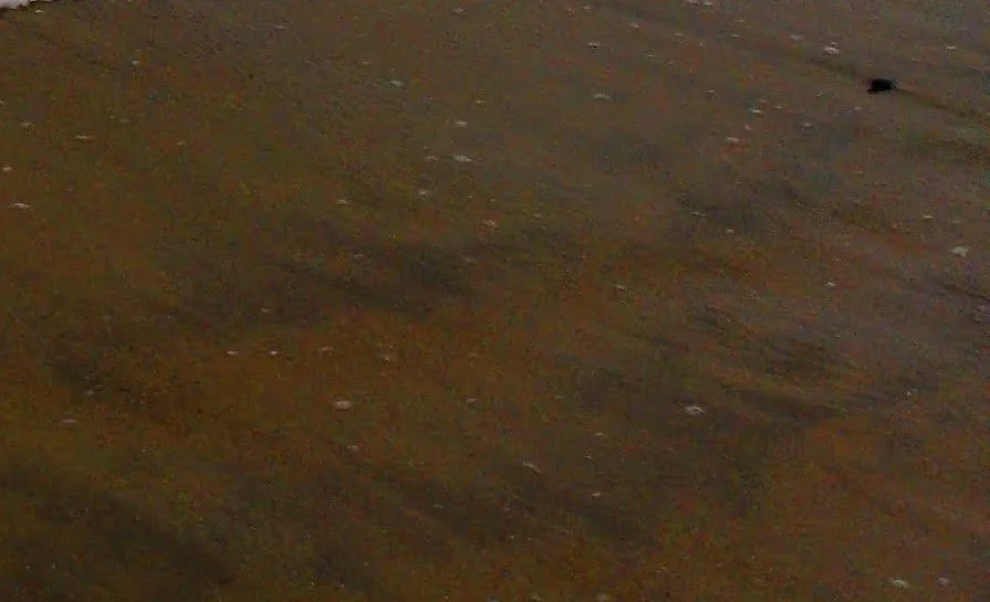 The tide is high - about 5 feet, but it is on its way down. There are some fair sized waves breaking close to shore. The water feels particularly warm on my feet.