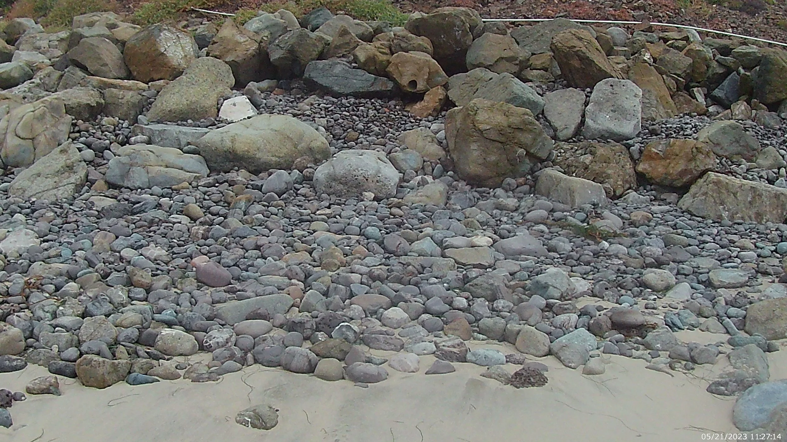 It looks like the sand has filled in a touch since Sunday. There is still a slope of rocks leading to the boulders at the base of the bluff but it is a noticeably smaller slope. My prediction is that things will be back to normal by my next swim on Friday though I am willing to be wrong.