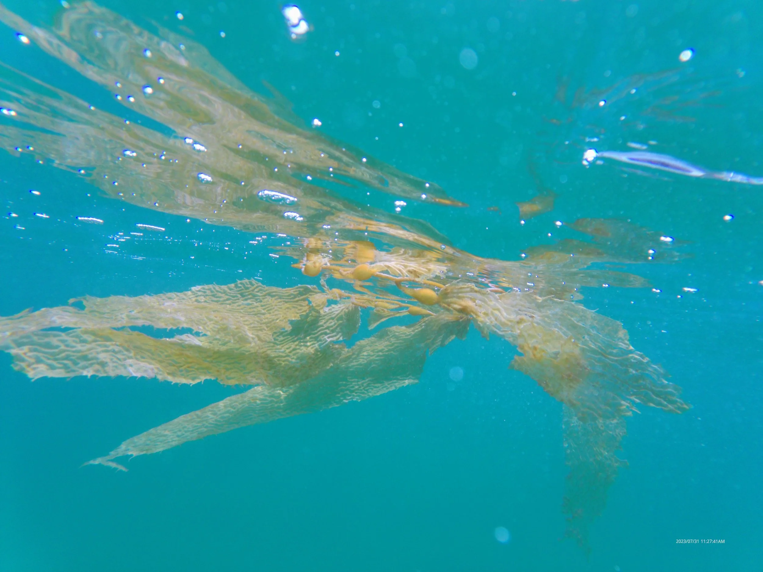 I swim through several schools of translucent Carabina. They swim between me and the dancing stalks of kelp anchored to the ocean floor.